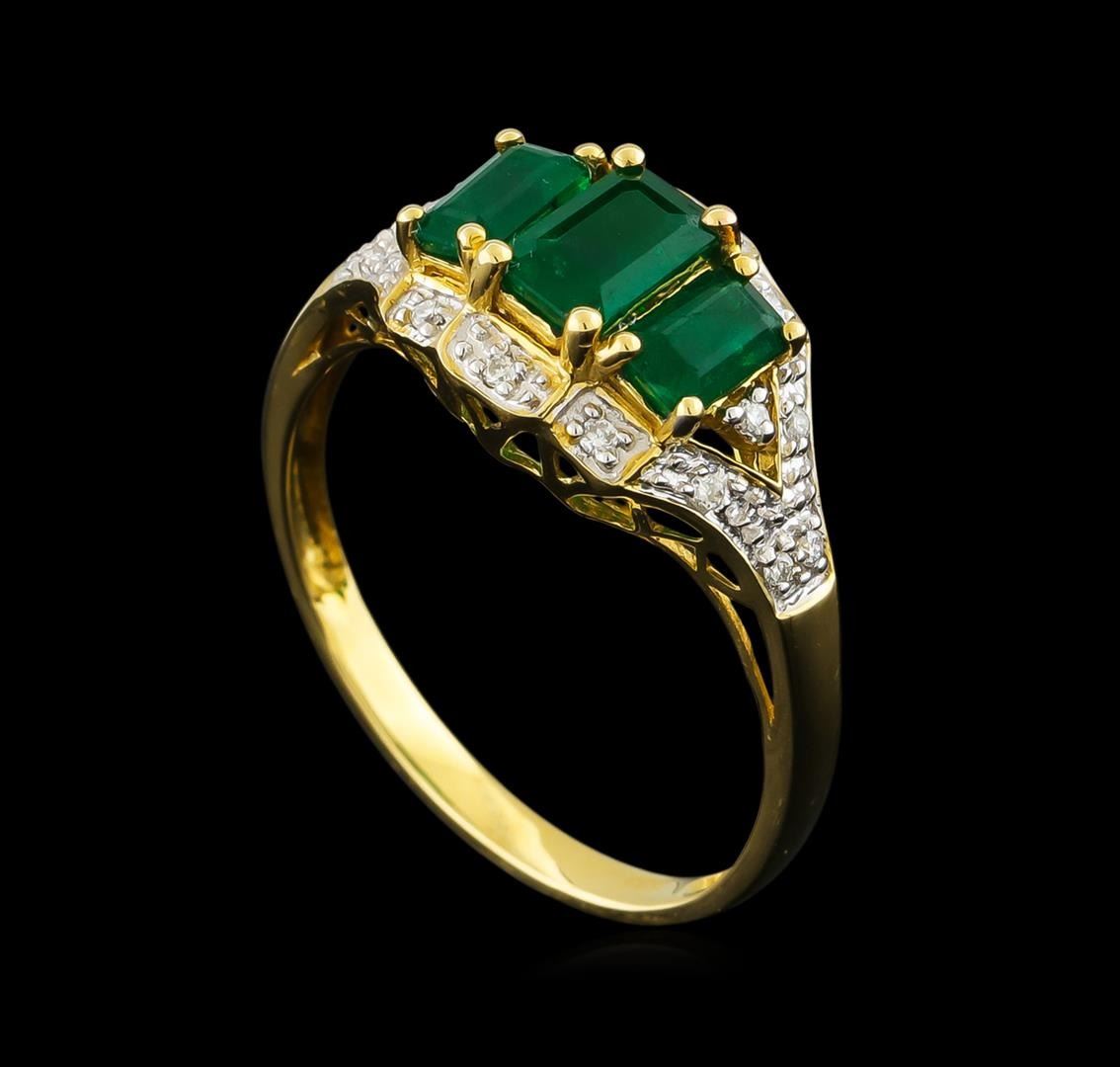 1.16 ctw Emerald and Diamond Ring - 14KT Yellow Gold