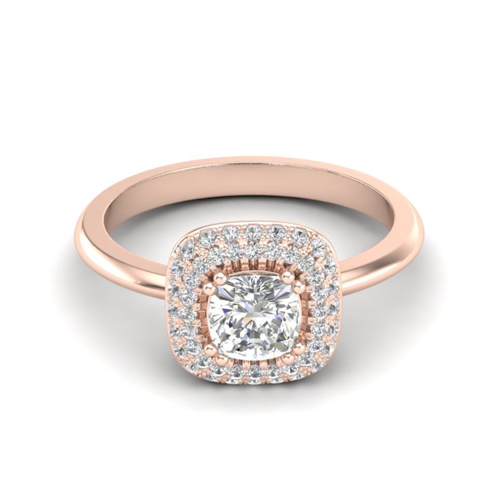 SKU: 21030 ---- 1.16 ctw Micro SI Cushion Diamond Engagment Ring Halo 14k Rose Gold