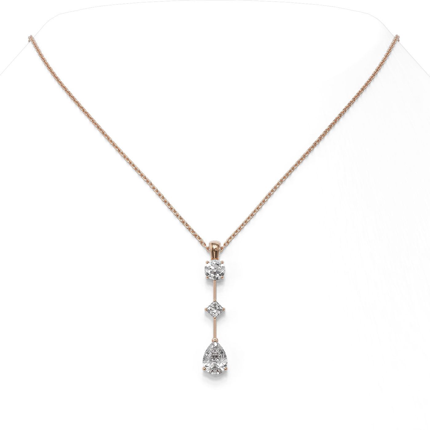 REF-163A3N - SKU: 48757 ---- 1.16 ctw Pear Cut Diamond Designer Necklace 18K Rose Gold