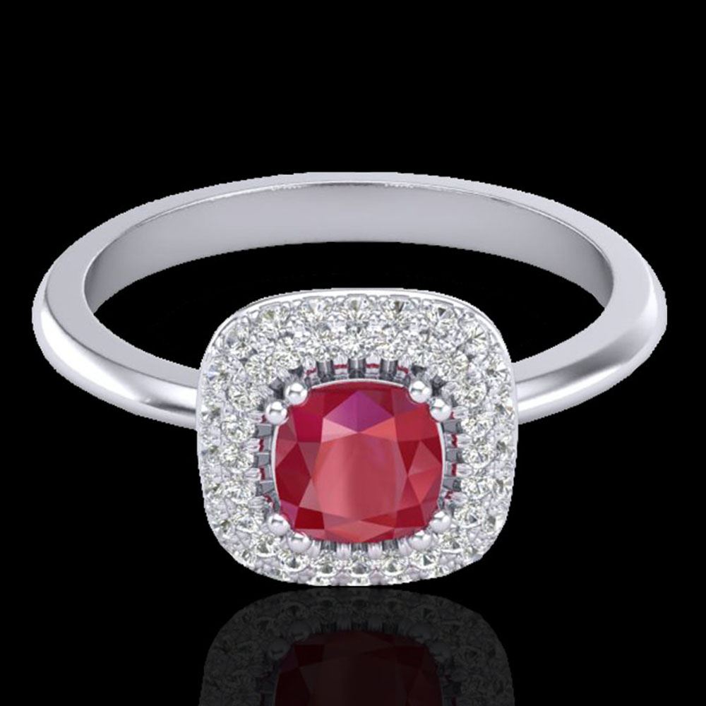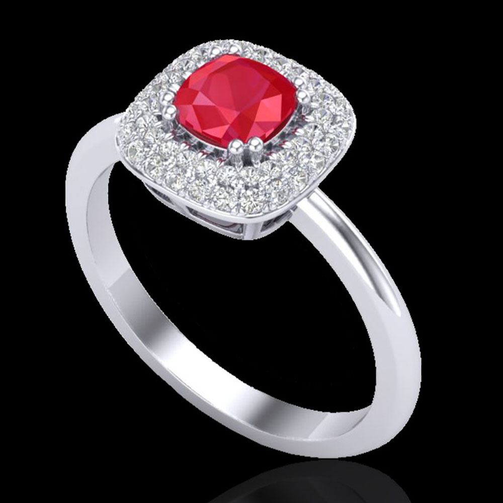 REF-80Y2X - SKU: 21033 ---- 1.16 ctw Ruby & Micro Pave VS/SI Diamond Ring Halo 18k White Gold
