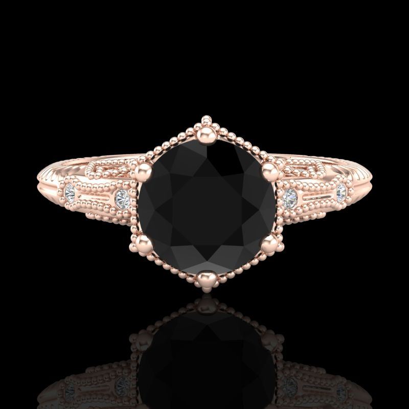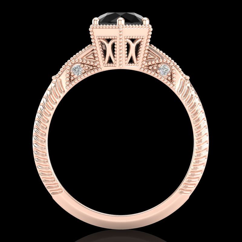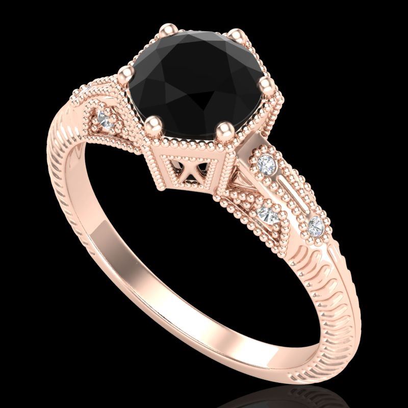 REF-85H5A -38032 ---- 1.17 CTW Fancy Black Diamond Solitaire Engagement Art Deco Ring 18K Rose Gold ---- Luxury Designer Brand Ring Appraised at $5,150 Certificate Number US38032 18k Rose gold, Ring Size is 7, Ring measuring approx. Uniform, weighing in total approx. 6.5 grams. Made in the USA and is stamped 18k, Main stone 1 carat total weight containing 1 pieces of Black Opaque color with VS quality Round shape cut Diamond , Stone #2 0.17 carat total weight containing 10 pieces of H-I color with VS/SI quality Round shape cut Diamond