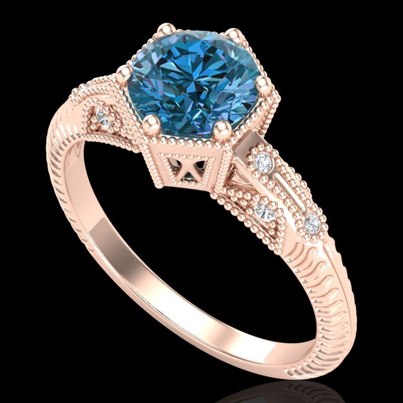 38035 - REF-180V2Y ---- 1.17 CTW Fancy Intense Blue Diamond Solitaire Art Deco Ring 18K Rose Gold ---- Luxury Designer Brand Ring Appraised at $10,900 Certificate Number US38035 18k Rose gold, Ring Size is 7, Ring measuring approx. Uniform, weighing in total approx. 6.5 grams. Made in the USA and is stamped 18k, Main stone 1 carat total weight containing 1 pieces of Intense Fancy Blue color with SI quality Round shape cut Diamond , Stone #2 0.17 carat total weight containing 10 pieces of H-I color with VS/SI quality Round shape cut Diamond