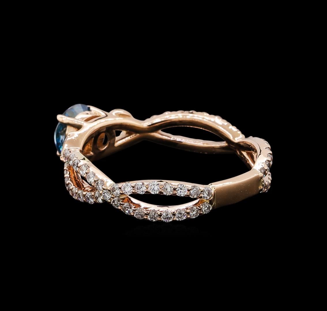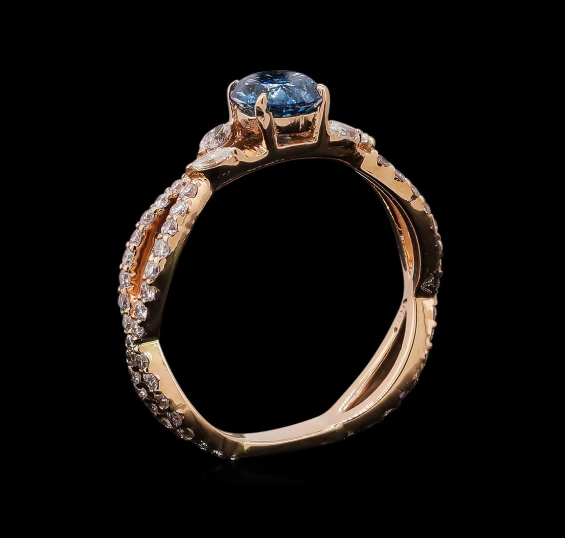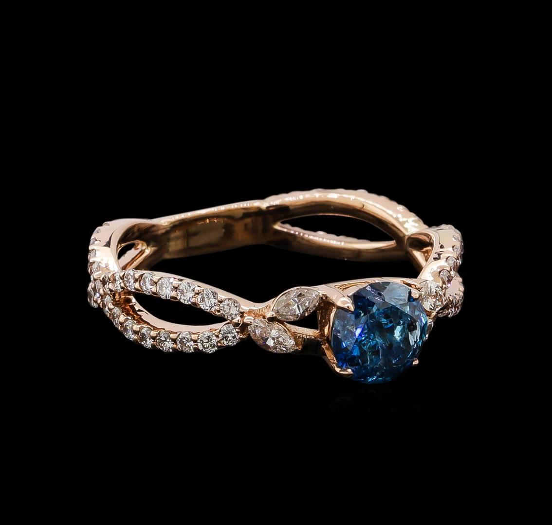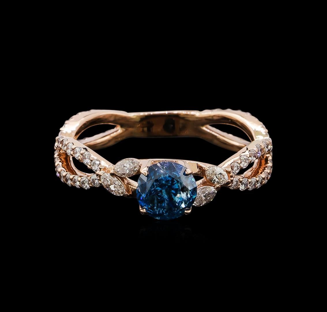 One ring : 14KT rose gold weighing 2.45gm containing one blue diamond with a total weight of 0.67ct and diamonds weighing 0.5ctw.