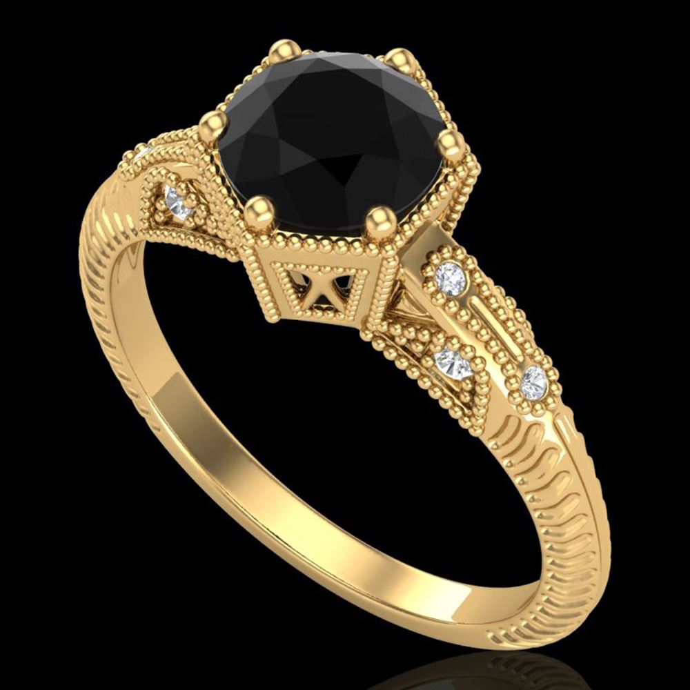 REF-85F5M - SKU: 38033 ---- 1.17 ctw Fancy Black Diamond Engagment Art Deco Ring 18k Yellow Gold