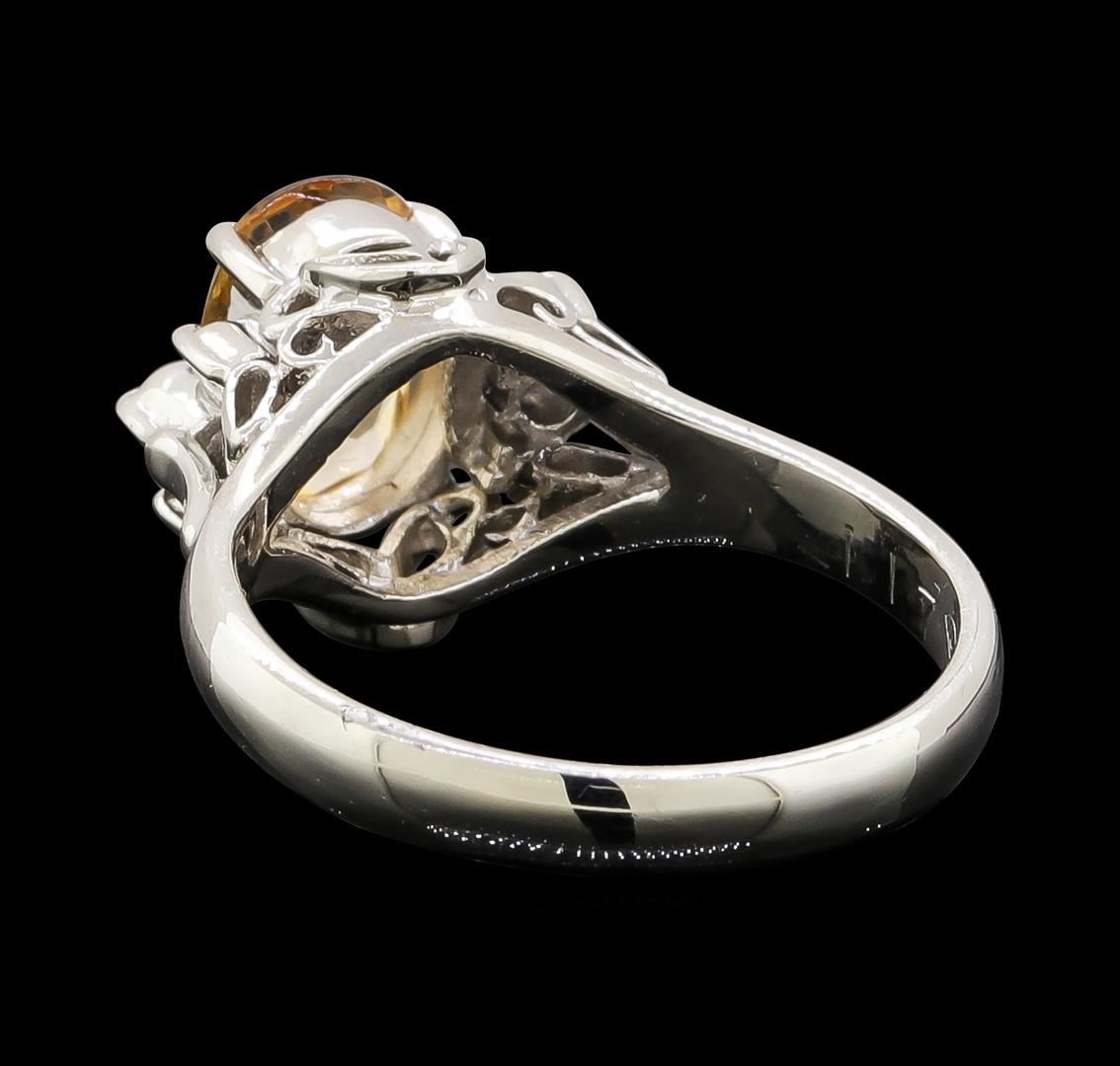 One ring featuring: Platinum containing Imperial Topaz with a total weight of 1.17ct and Diamonds with a total weight of 0.08ct. Total Weight of Ring: 5.6 grams.