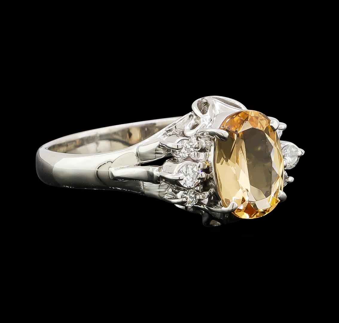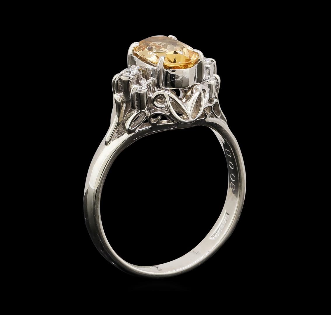 One ring featuring: Platinum containing Imperial Topaz with a total weight of 1.17ct and Diamonds with a total weight of 0.08ct. Total Weight of Ring: 5.6 grams.