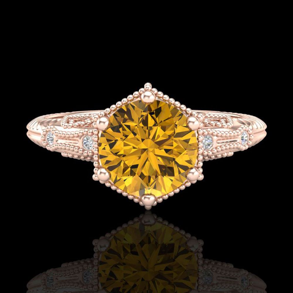 REF-180K2Y - SKU: 38037 ---- 1.17 ctw Intense Fancy Yellow Diamond Art Deco Ring 18k Rose Gold