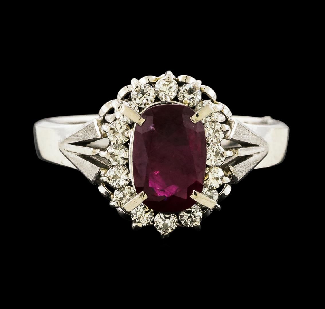 One ring featuring: Platinum containing Ruby with a total weight of 1.17ct and Diamonds with a total weight of 0.28ct. Total Weight of Ring: 4.9 grams.