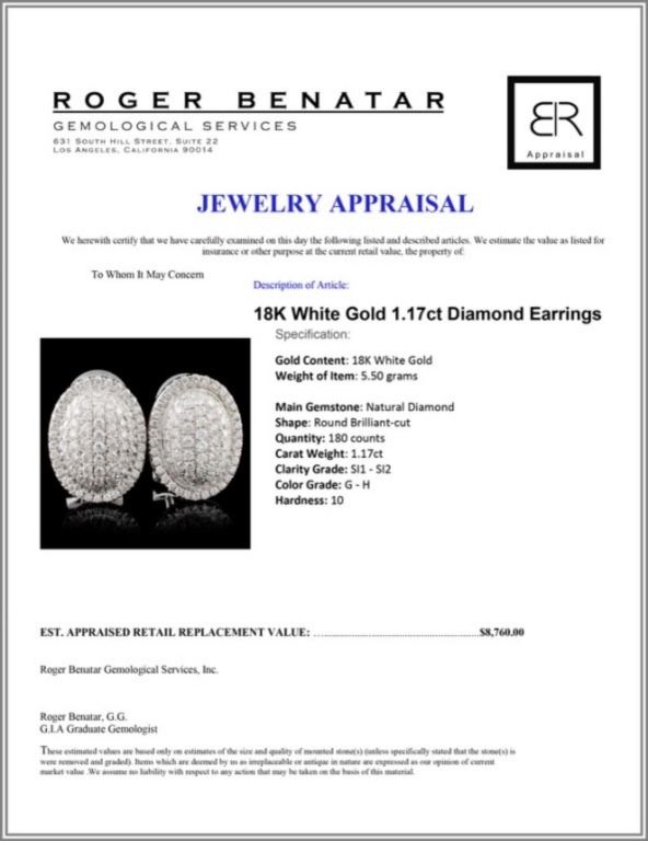 Regarding Appraised Jewelry and Loose Stones - Auctionfarm sends them out to a third party for Retail Replacement Value Appraisals, which are the most common. These types of evaluations are written for insurance needs. This would be the cost to replace the jewelry with an item of equal quality and kind, considered to be the current market price or the replacement value. This type of appraisal is done to protect you in the event of damage or loss of a valuable item. Our appraisals are conducted by independent 3rd Party appraisal firms that utilizes Certified GIA Gemologist. Appraisals should be used for verification of gemstone and/or metal weight, size, and grade only, not actual value. Appraisal value should be considered for insurance purposes only, not actual value, as price varies greatly from retail locations thru out the world. Items should not be purchased with the expectation to resell for appraisal price, or for profit.