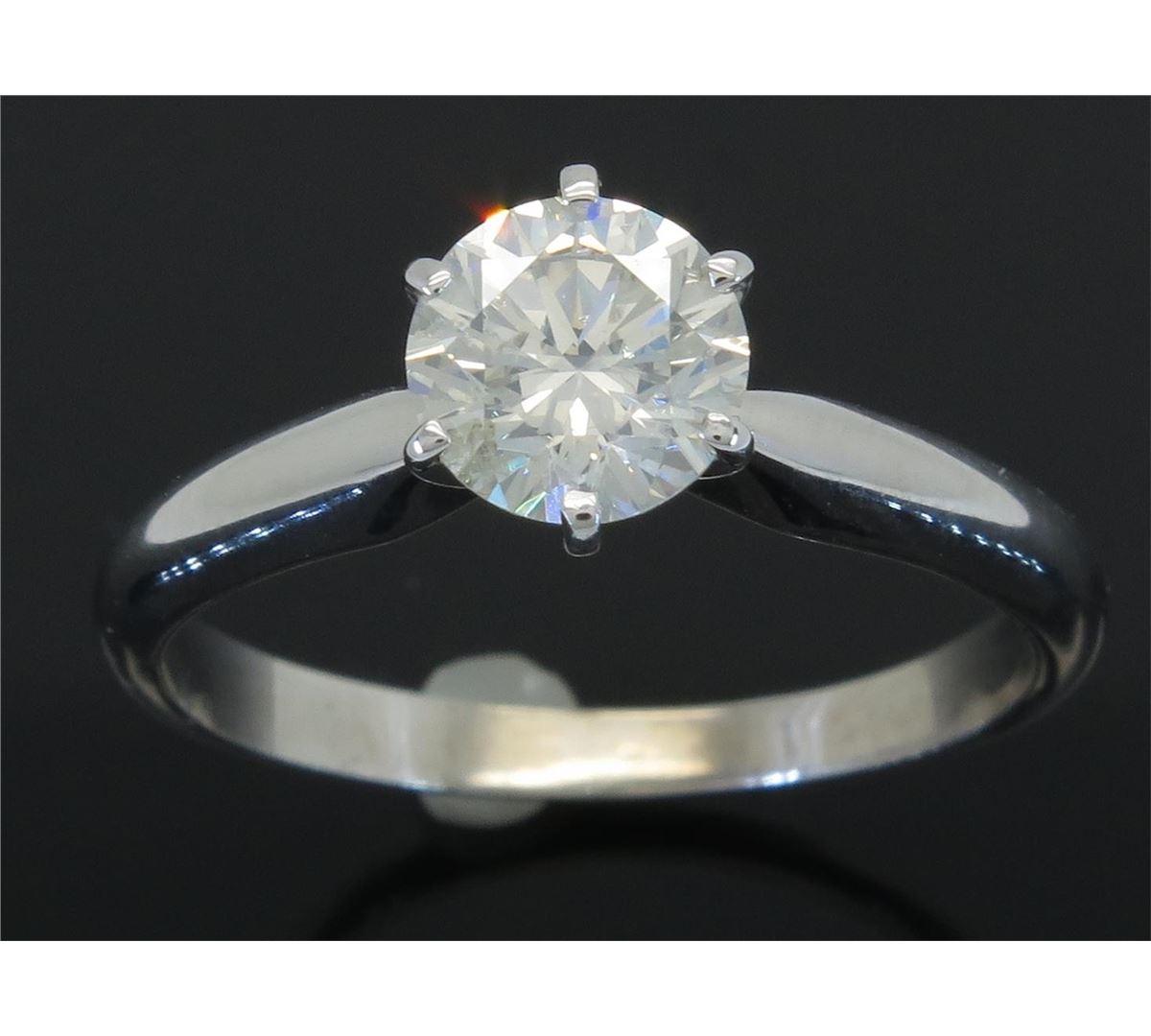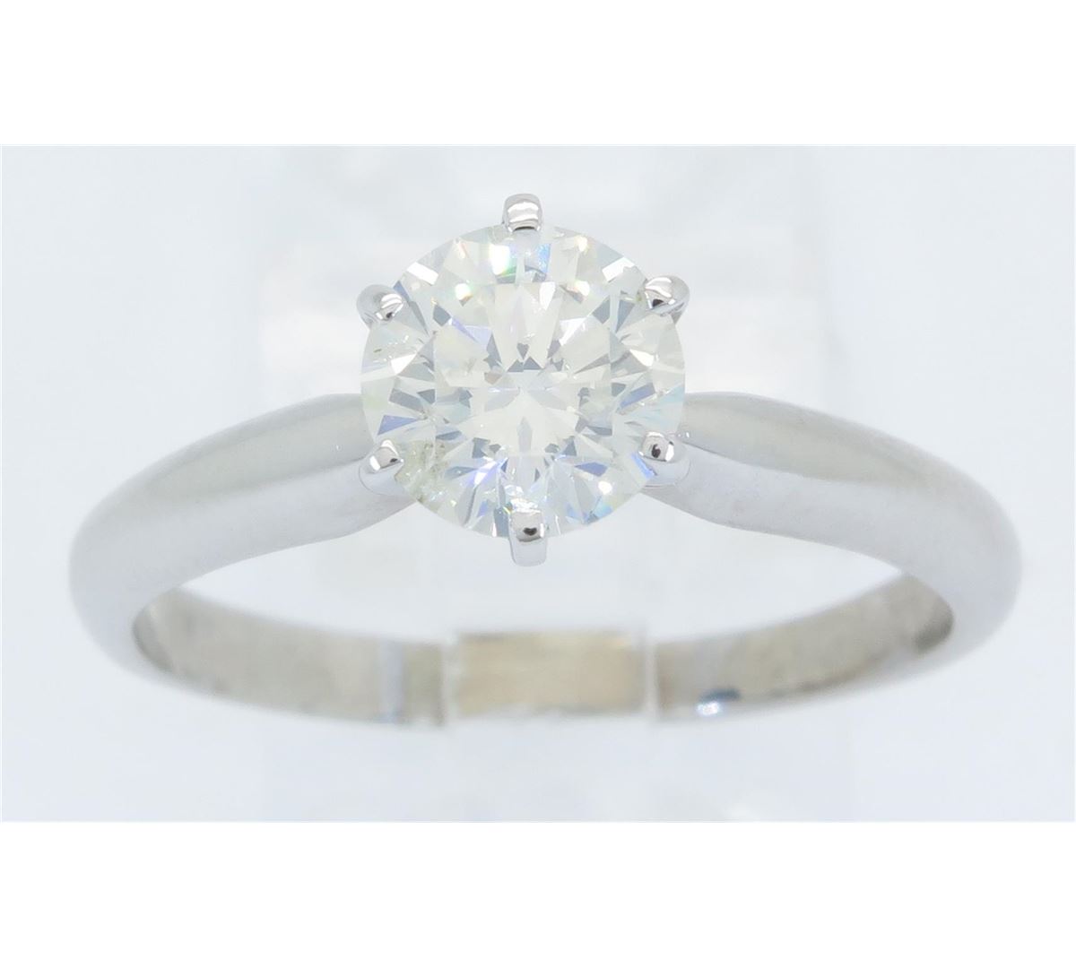 One tested 14K white gold certified diamond ring. Containing: One IGI Certified Round Brilliant Cut Diamond. Approximate size: 1.17CT, Clarity: I1-I2, Color: H-I. Diamonds are graded in the mounting, unless otherwise stated. Weight: 3.6 grams. Size: 8.5 IGI Appraised at $4,425.00.