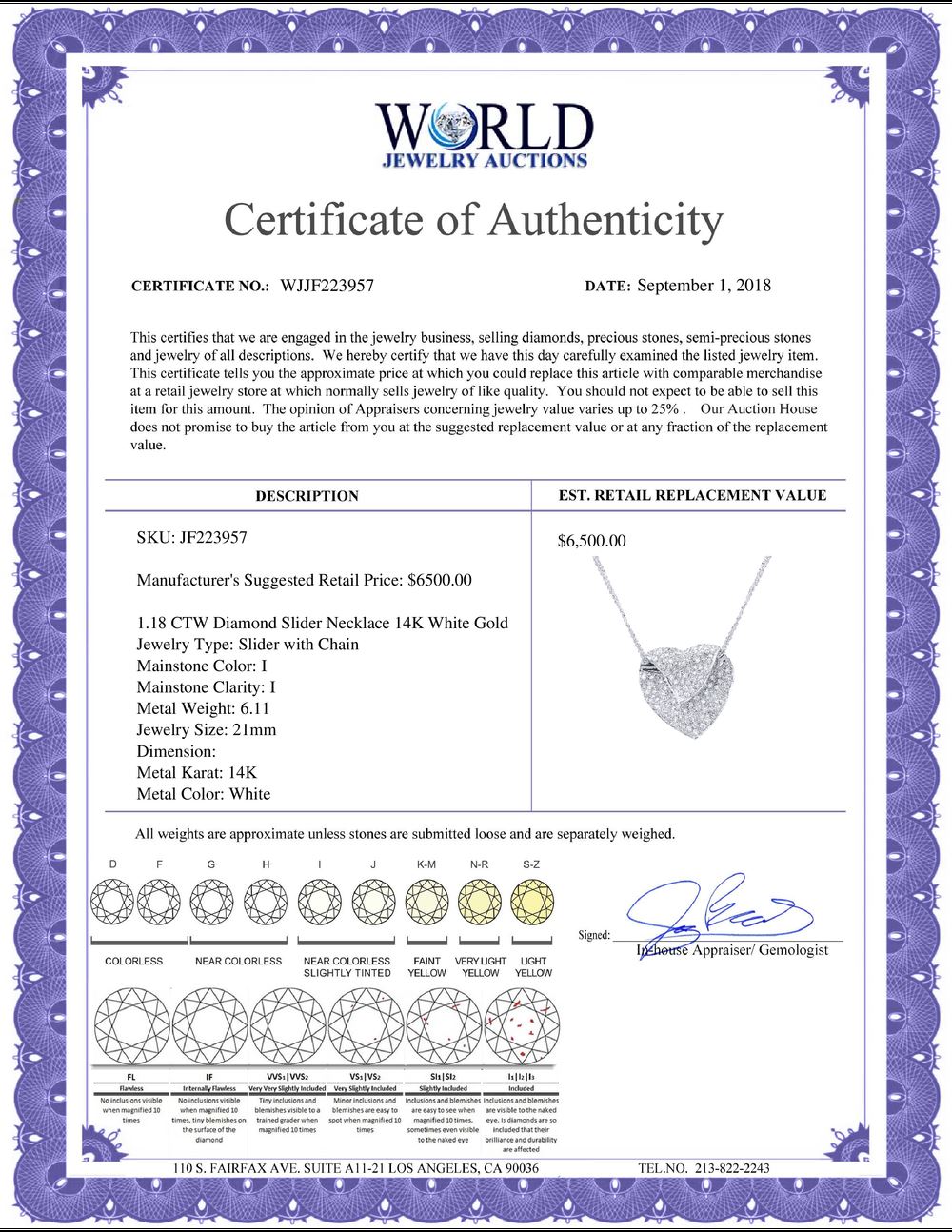 REF-85M3F - JF223957 ---- 1.18 CTW White Round Diamond Necklace 14K White Gold