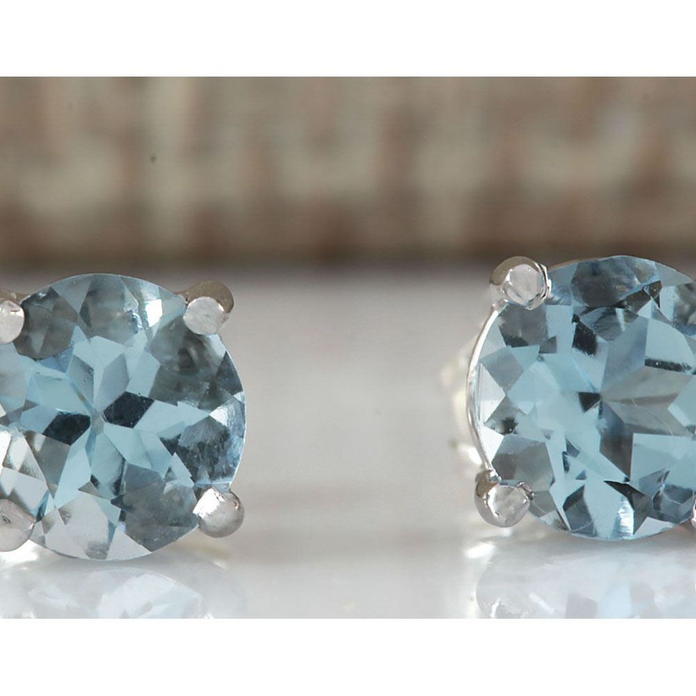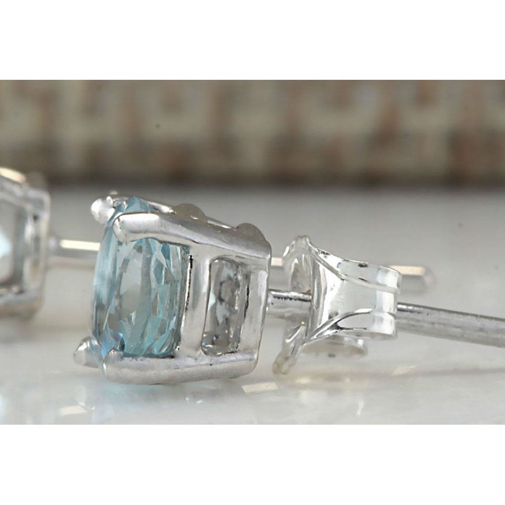 1.18 CTW Natural Aquamarine Earrings 18K Solid White Gold