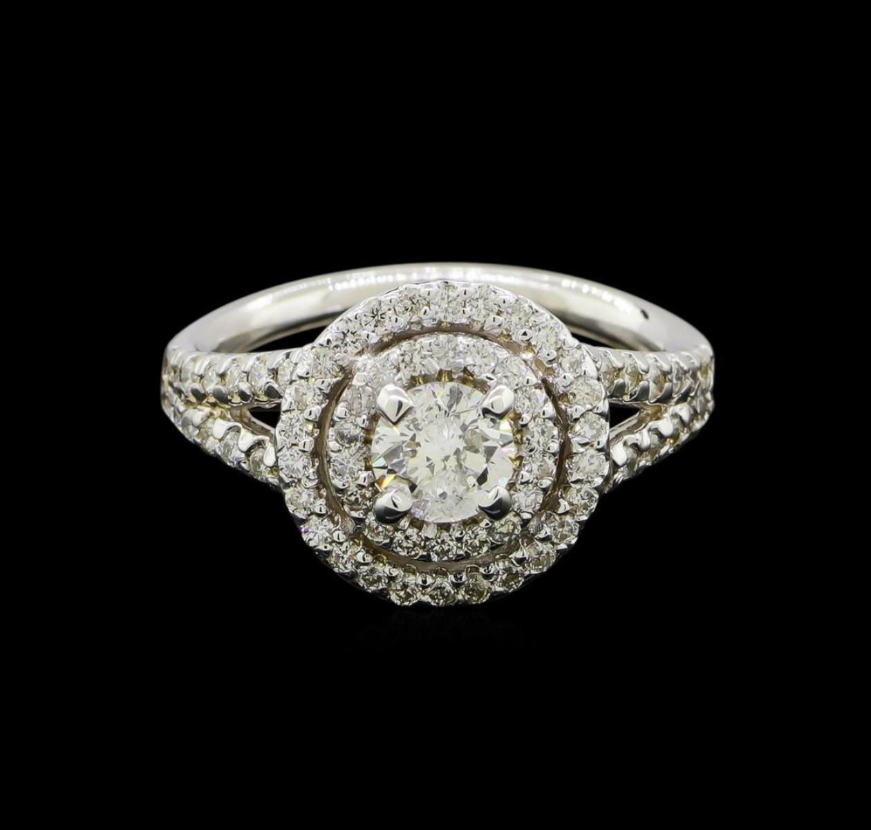One electronically tested 14KT white gold lady's cast wedding ring with a split shank double basket halo with a bright polish finish. The featured lady's ring has a split double shank measuring 5.53 millimeters wide. Condition is new, good workmanship. Containing: One prong set round brilliant cut diamond, measuring 5.15 - 5.13 x 3.28mm (depth est.) , 10.00.%. GTCF approximate weight of 0.58ct. Graded in the setting. Clarity I-1. Color: H Cut Good Seventy-Six prong set round brilliant cut diamonds, measuring 1.30 - 1.25 x 0.79mm (depth est.) approximate total weight of 76 Stones = 0.60ct. Graded in the setting. Clarity SI-1 to SI-2. Color: H - I Cut Good. Total Weight of Diamonds 1.18ct.. Total Weight of Ring 6.30gm. GAS Appraised at $5,465.00. GAS Appraised.