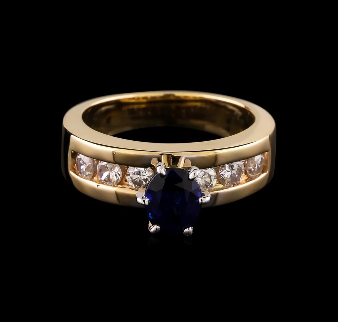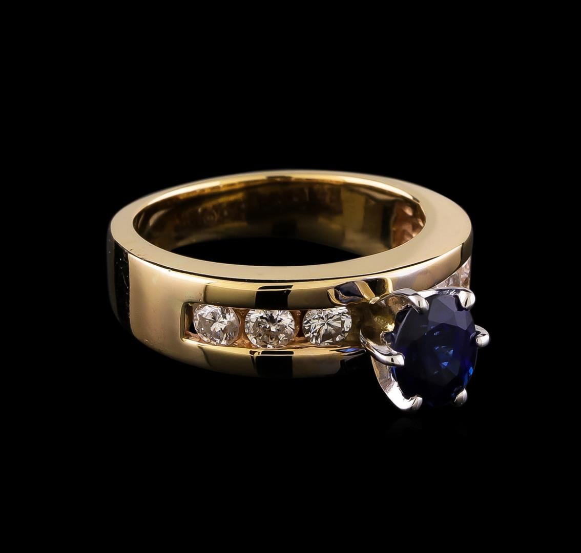 One ring featuring: 14KT yellow gold weighing 6.06 grams containing one sapphire center weighing 1.18ct and diamonds weighing 0.50ctw.