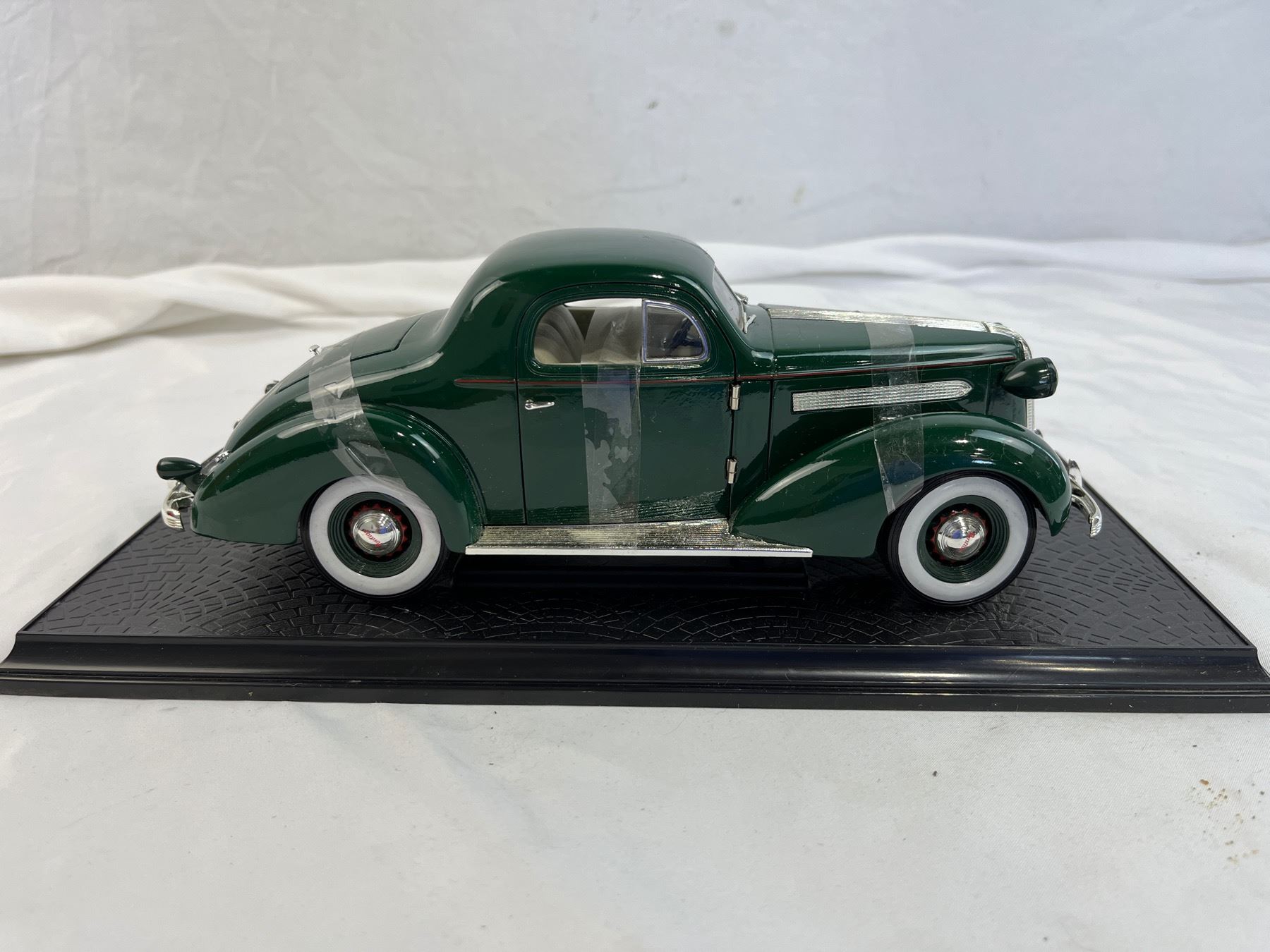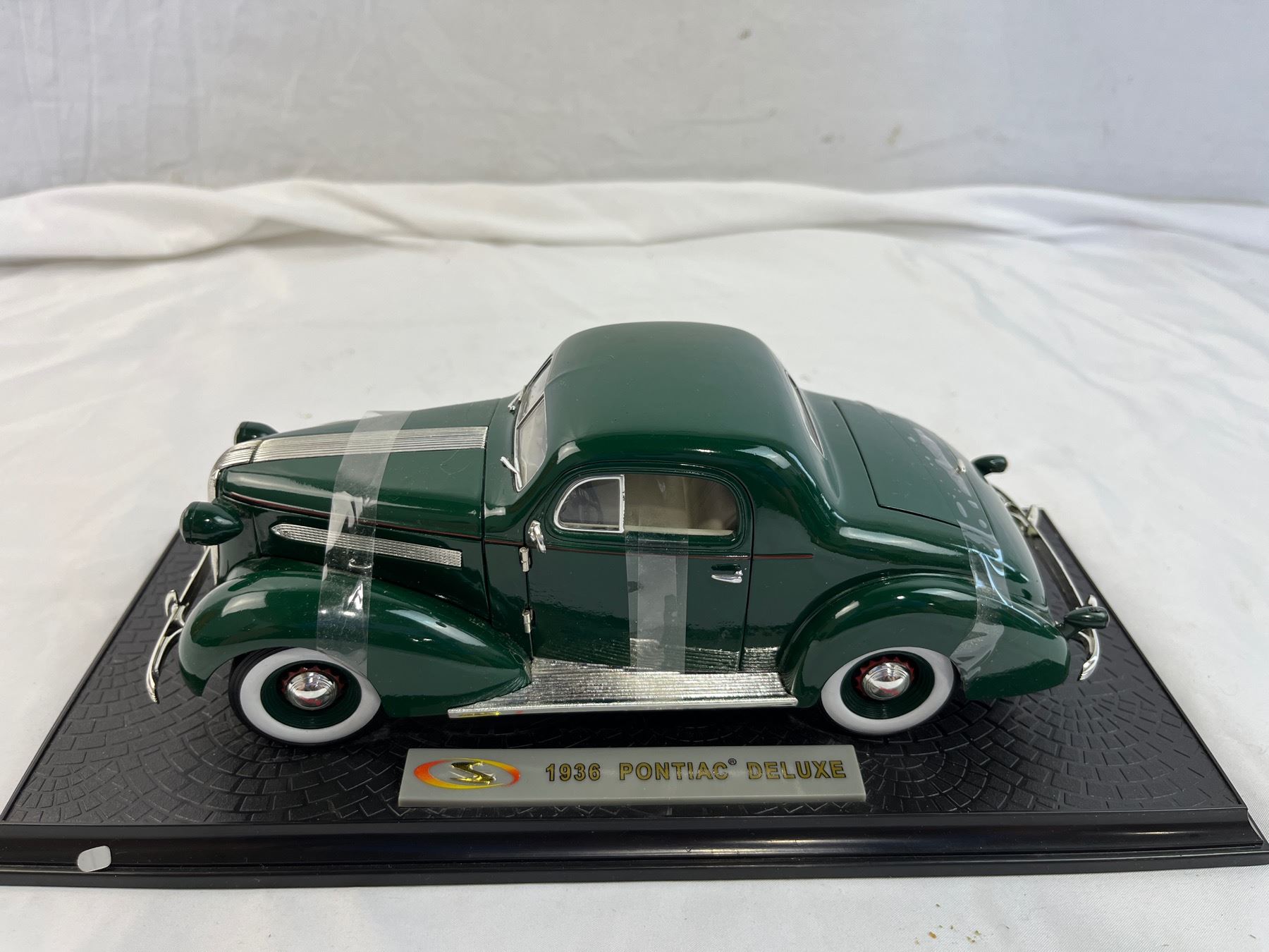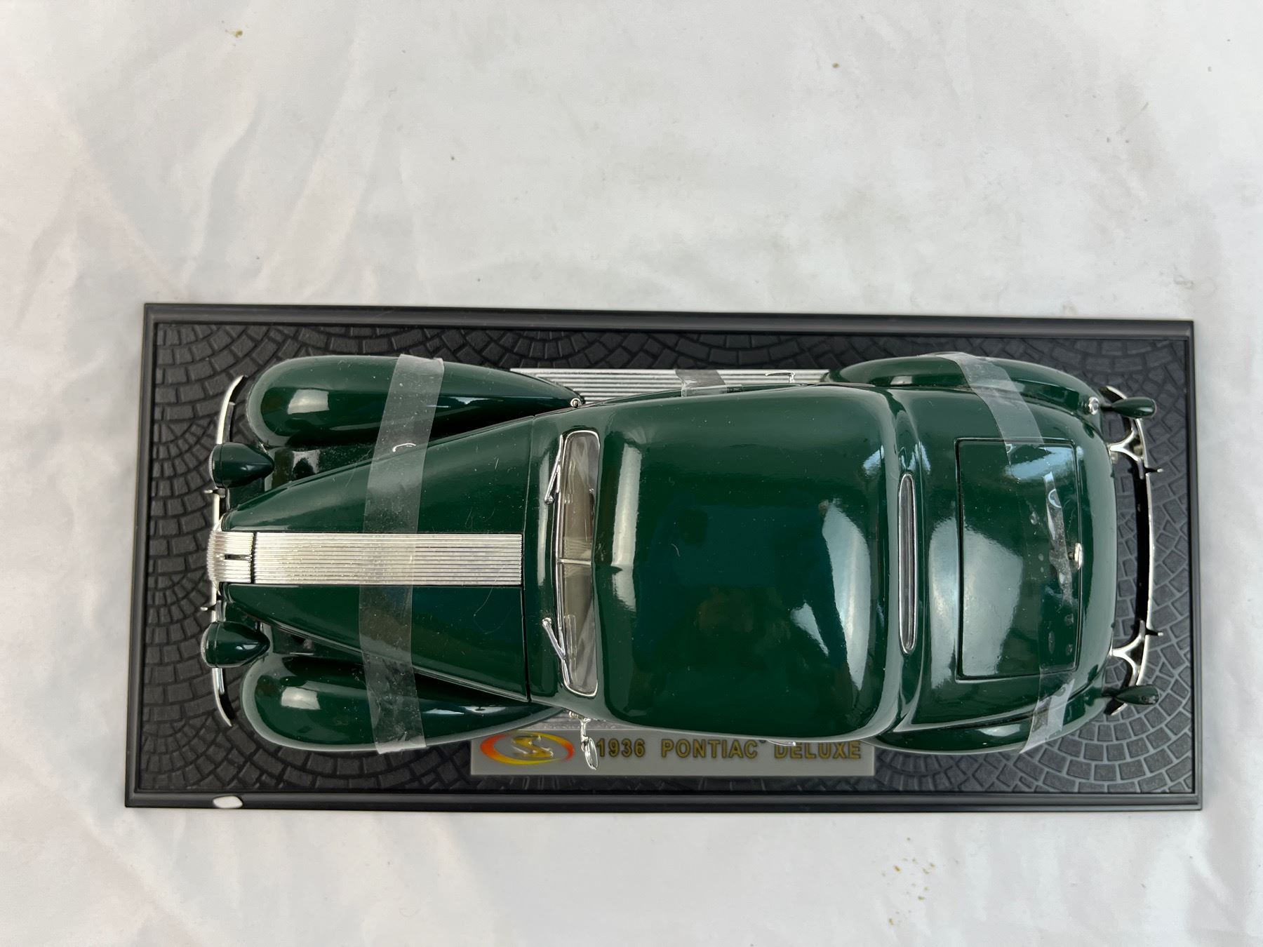 Near mint condition with original plastic sleeves. Green in colour 1/18 scale die cast pontiac delux.