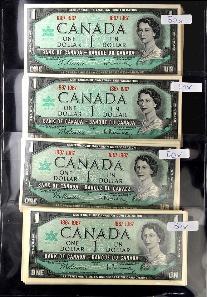 $1 1867-1967 Centennial of Canadian Confederation, lot of 200 notes, Unc.