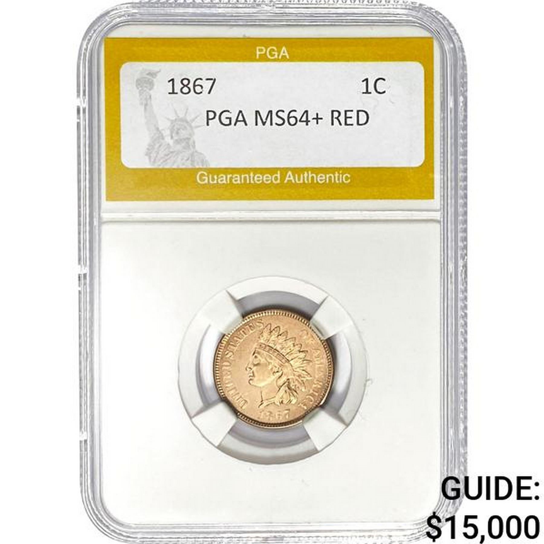 1. 1867 1C Indian Head Cent PGA MS64+ RE