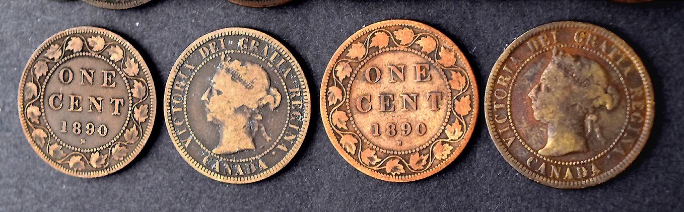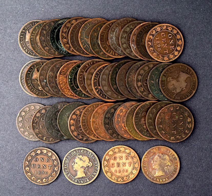 Canada, 1890H, One Cent (Large), 48 coins, choice VG-VF.
