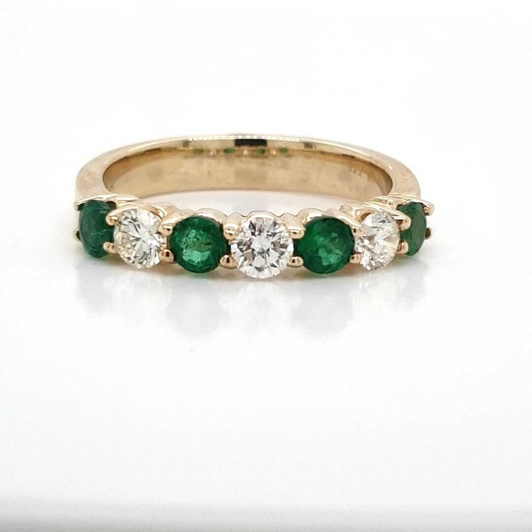 14Kt Yellow Gold Ring . With A 0.68cts Emerald & 0.50cts Full cut Round Brillant cut diamonds set in A Prong set, Color G-H Clarity VS-SI Comes with a Certificate of Authenticity from Independent Gemological Laboratory , 14Kt Yellow Gold , Emerald & Diamond Ring , Emerald 0.68cts & Diam 0.50cts , Size 7 1/2, 3.8 Grams , sizing up to +/- 2 Sizes , New.