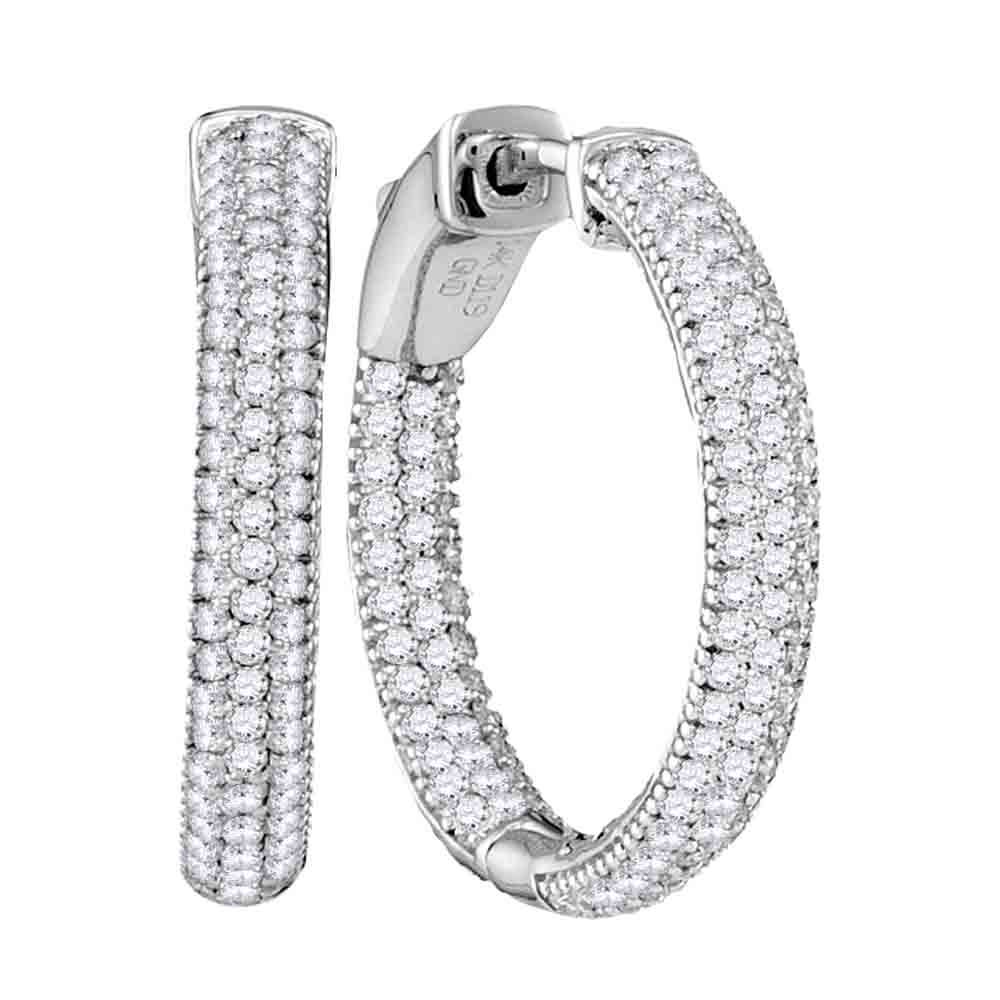 REF-187F4N- SKU: GD94797 ---- 1.19 CTW Pave-set Diamond Hoop Earrings 14KT White Gold