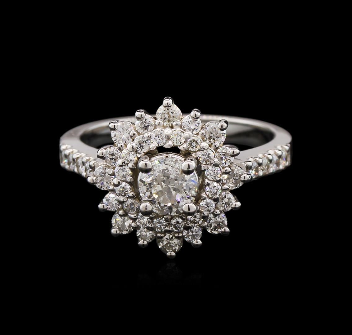 One electronically tested 14KT white gold ladies cast diamond unity ring with a bright polish finish. The ring features a round brilliant diamond set within a gallery of diamonds, supported by diamond set shoulders and completed by a two millimeter wide band. Identified with markings of "K14". Condition is new, good workmanship. Containing: One prong set round brilliant cut diamond, measuring 4.90 - 4.90 x 2.80mm, 14.00.%. GTCF exact weight 0.51ct. Graded in the setting. Clarity: I-2. Color: I Forty prong set round brilliant cut diamonds, measuring 2.00 - 1.40 x 1.05mm exact total weight 40 Stones = 0.68ct. Graded in the setting. Clarity: SI-2 to I-1. Color: G - I. Total Weight of Diamonds 1.19ct. Total Weight of Ring 5.16gm. AIG Appraised.