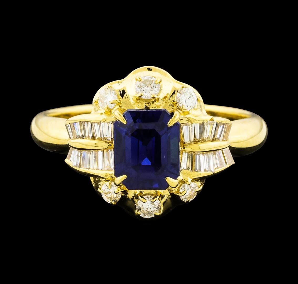 One ring featuring: 18KT Yellow Gold containing Sapphire with a total weight of 1.19ct and Diamonds with a total weight of 0.34ct. Total Weight of Ring: 3.7 grams.