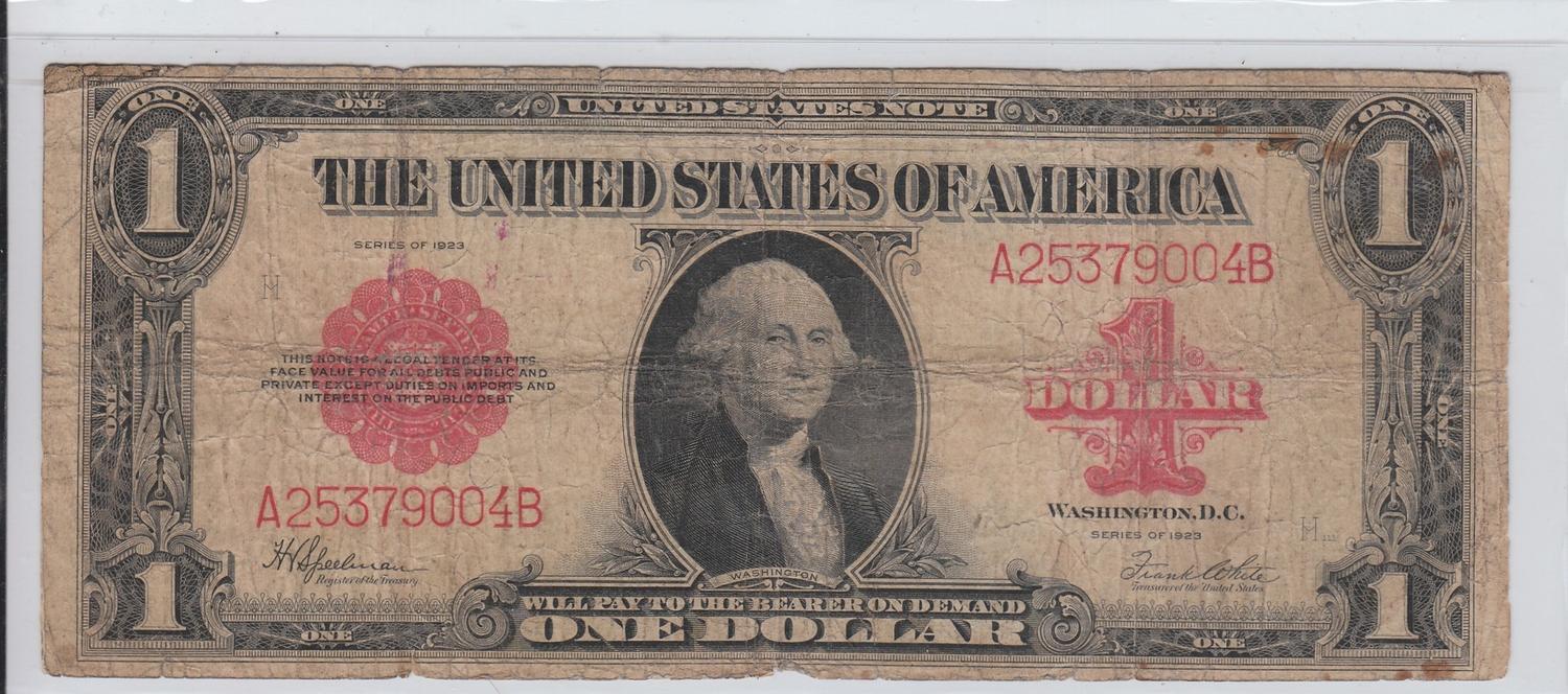 $1 1923 RED SEAL LARGE SIZE 1 YEAR TYPE NOTE !!!