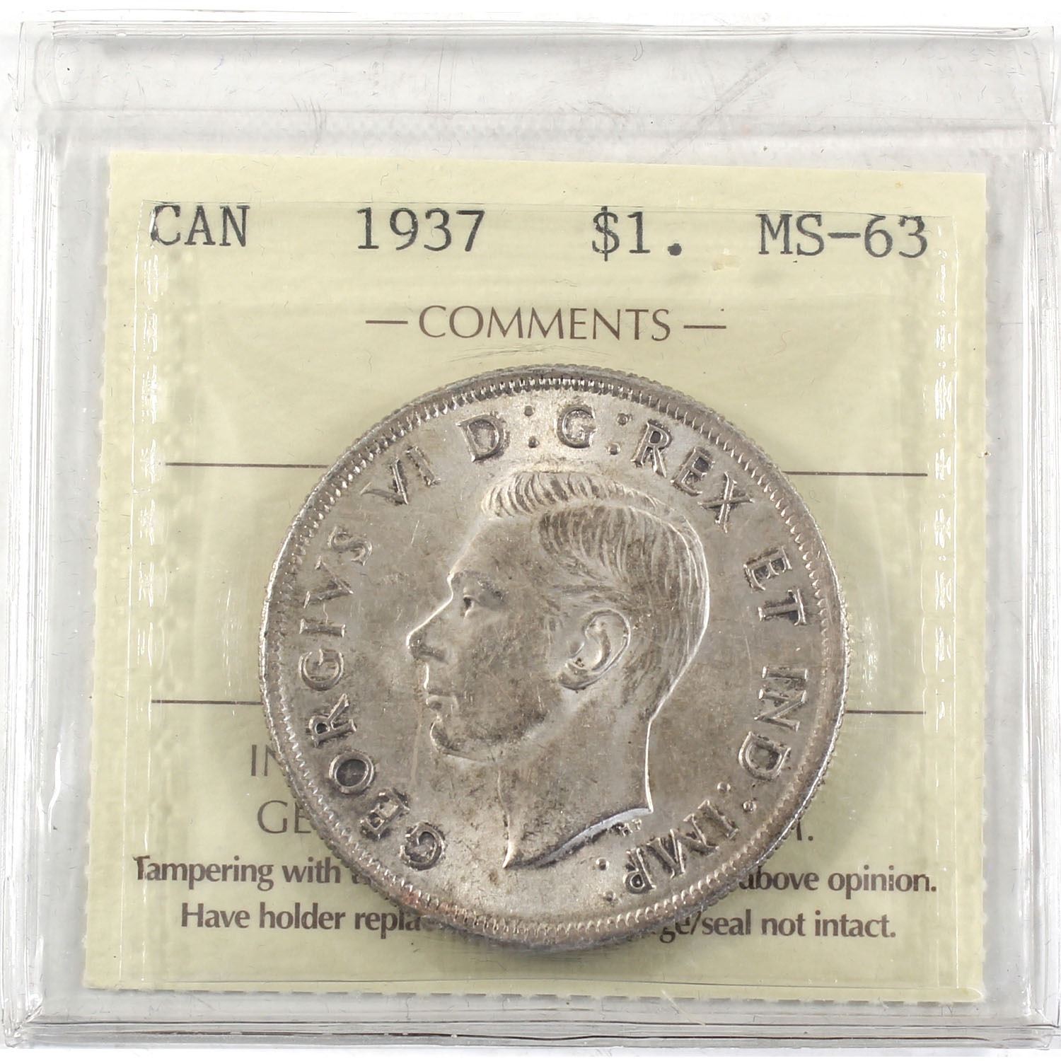 $1 1937 ICCS Certified MS-63. First Year Strike George 6th!