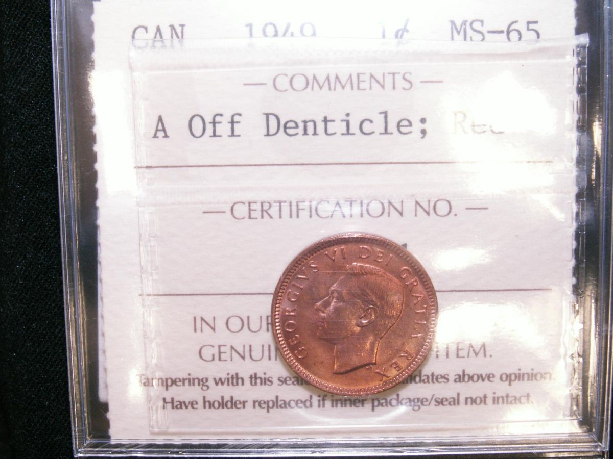 1¢ 1949 A Off Dent ICCS MS65RD. Full red example.