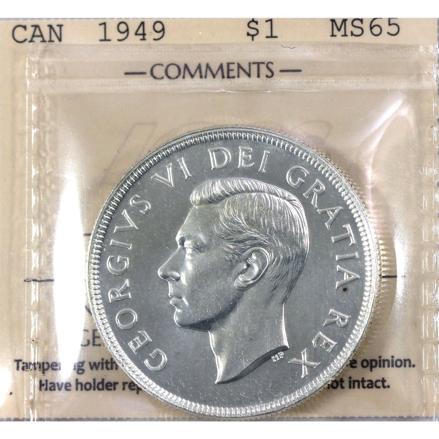$1 1949 ICCS MS65. A near flawless coin with Mirror finishes.
