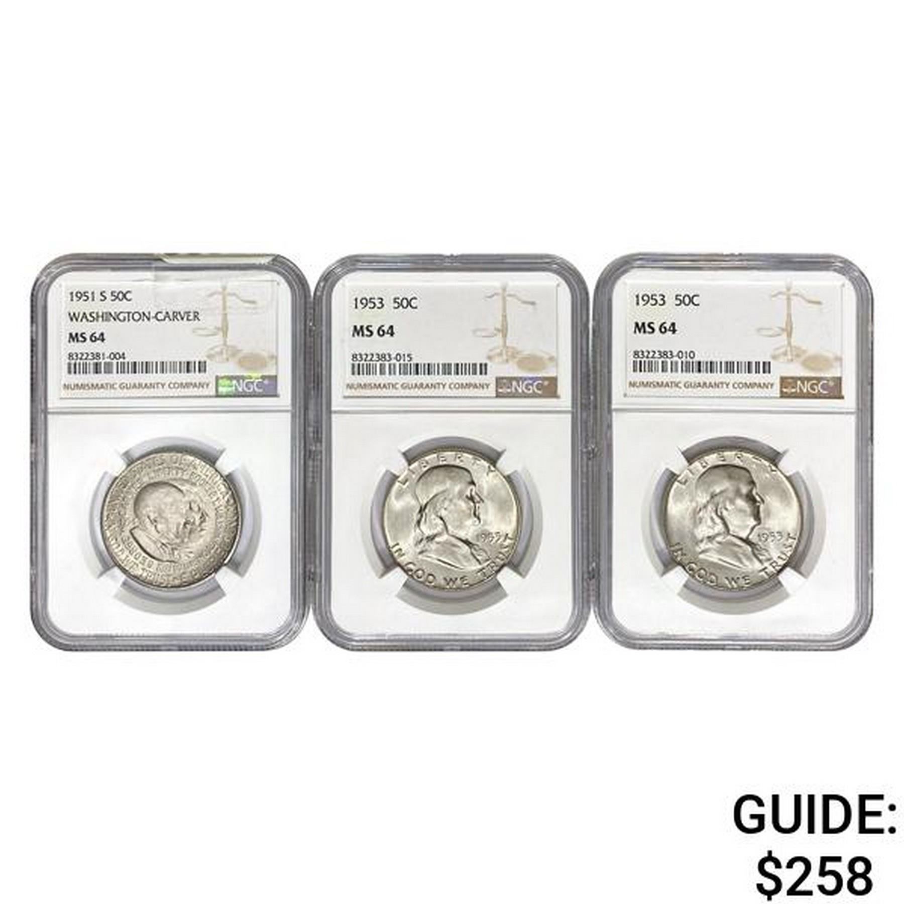 1. 1951-S Washington-Carver 50C NGC MS64