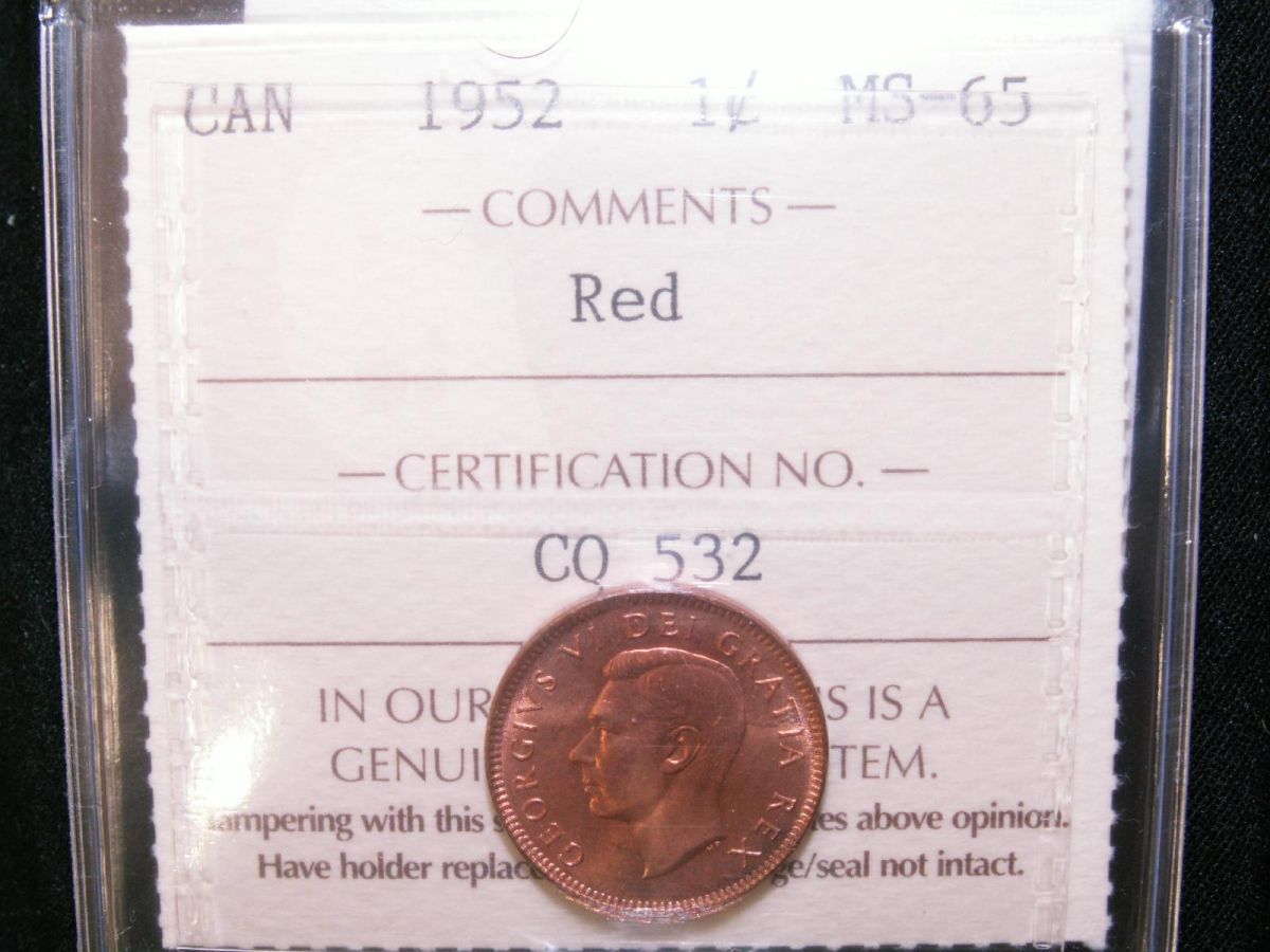 1¢ 1952 ICCS MS65RD. Superb full red example.