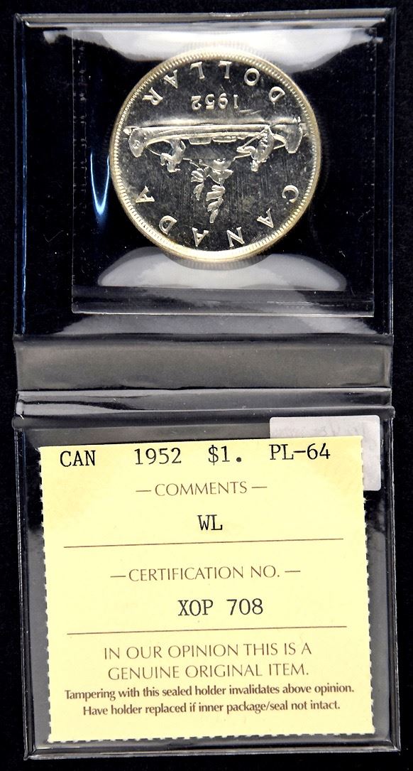 Canada $1, 1952 "WL", certified ICCS PL-64, another beautiful coin, very conservatively graded.