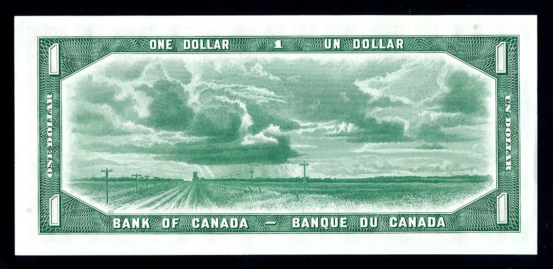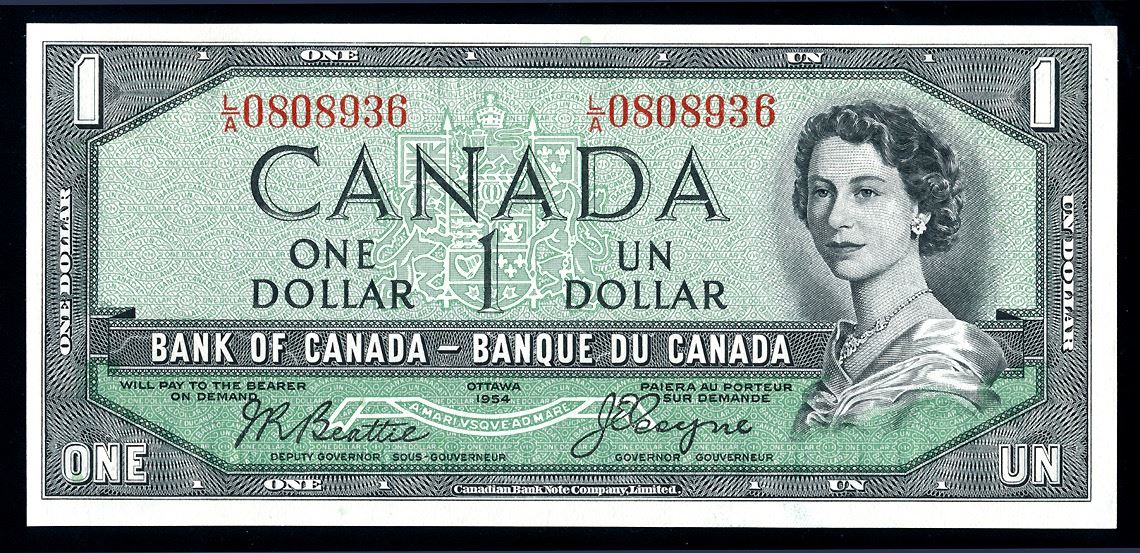 Bank of Canada, One Dollar, 1954 Beattie - Coyne, Devil's Face, #BC-29b, S/N : L/A 0808936, choice AU++.