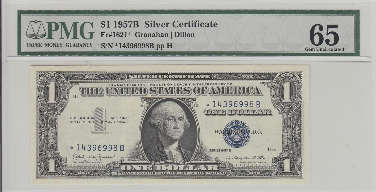 $1 1957 B SILVER CERTIFICATE PMG GEM 65