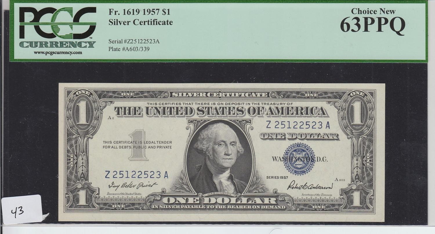 $1 1957 SILVER CERTIFICATE PCGS 63 PPQ