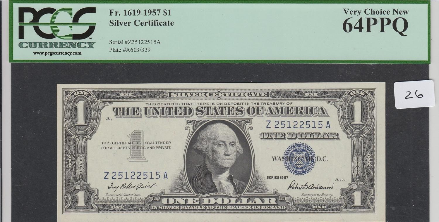 $1 1957 SILVER CERTIFICATE PCGS PPQ 64