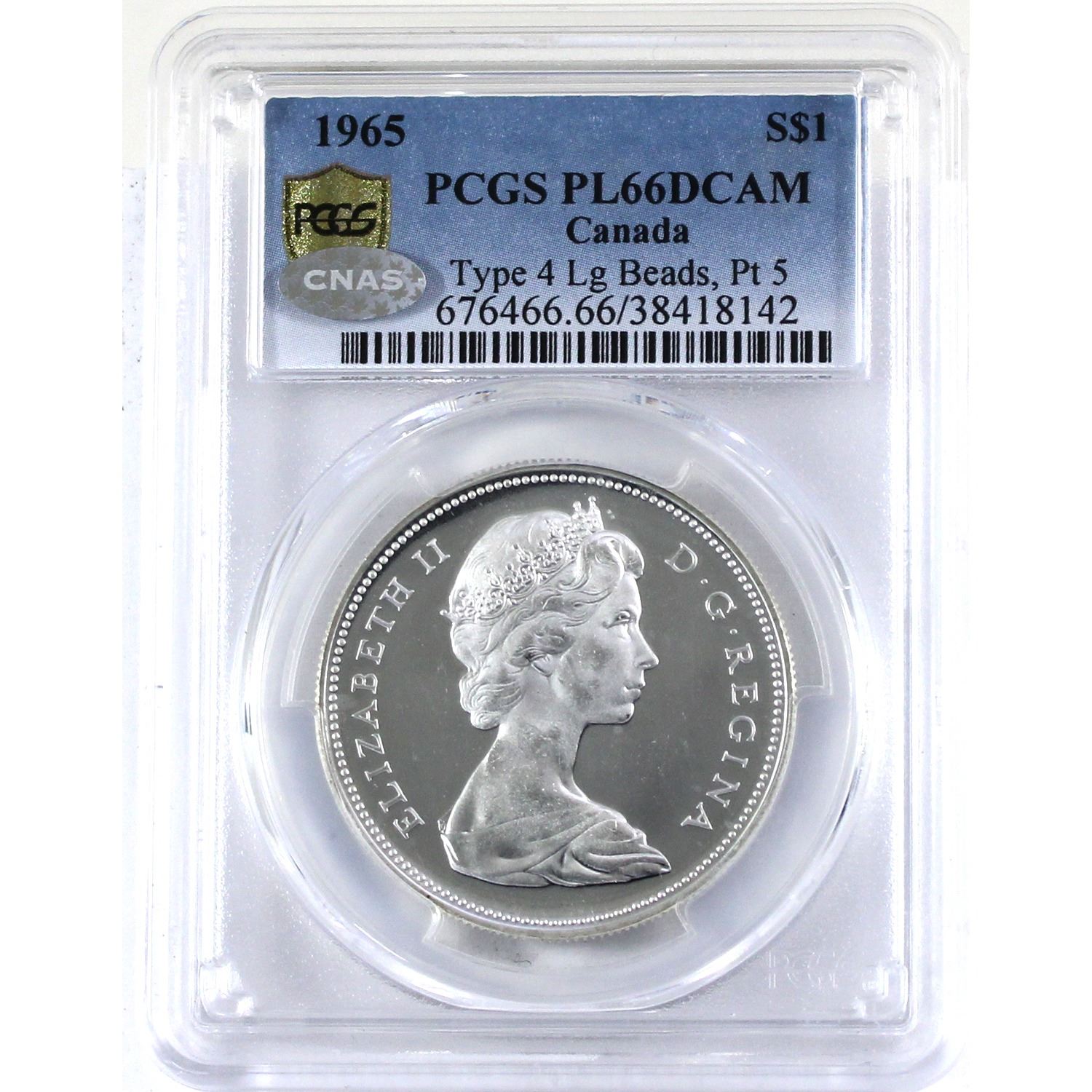 $1 1965 Type 4 Large Beads Pointed 5 PCGS PL66DCAM (CNAS sticker on holder)