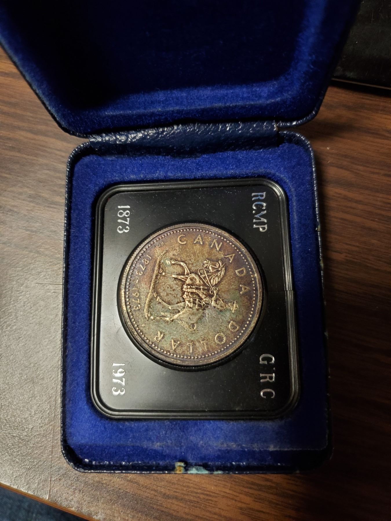 1-1973 Mountie Canadian silver dollar in black case,1-dollar