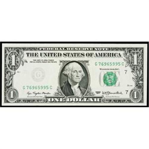 $1, 1977 FRN, Ink Jet Malfunction with a Weak Left Seal Error, Gem Crisp Uncirculated.