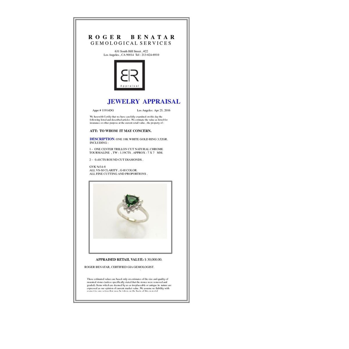 18K WHITE GOLD NATURAL COPPER BEARING CHROME PARAIBA TOURMALINE:3.52GRAM /CROME TOURMALINE TRILLION CUT: 1.19CT/ DIAMOND RD: 0.41CT/#GVR1258