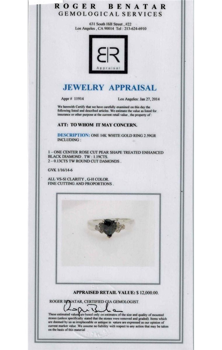 14K WHITE GOLD TREATED BLACK DIAMOND RING:2.59 GRAMS/TREATED BLACK DIAMOND:1.19CT/WHITE DIAMOND:0.30CT/#GVR1063