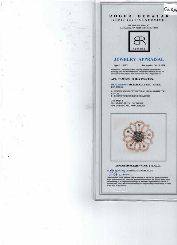 14K R/G RING :9.24GRAM / ALEXANDRITE :1.19CT / DIAMOND RD :1.20CT /#GVR1469