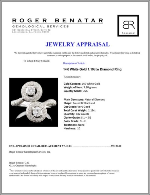 Regarding Appraised Jewelry and Loose Stones - Auctionfarm sends them out to a third party for Retail Replacement Value Appraisals, which are the most common. These types of evaluations are written for insurance needs. This would be the cost to replace the jewelry with an item of equal quality and kind, considered to be the current market price or the replacement value. This type of appraisal is done to protect you in the event of damage or loss of a valuable item. Our appraisals are conducted by independent 3rd Party appraisal firms that utilizes Certified GIA Gemologist. Appraisals should be used for verification of gemstone and/or metal weight, size, and grade only, not actual value. Appraisal value should be considered for insurance purposes only, not actual value, as price varies greatly from retail locations thru out the world. Items should not be purchased with the expectation to resell for appraisal price, or for profit.