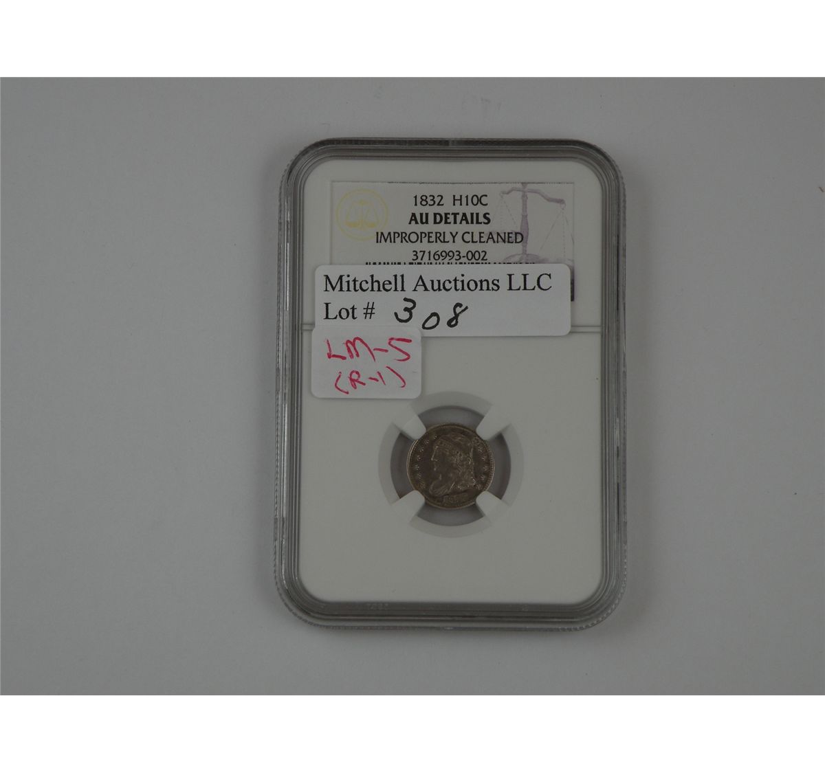 1/2 10C 1832 LM-5. NGC AU Details, Improperly Cleaned. This pale grey specimen displays signs of a light cleaning. Est.$85