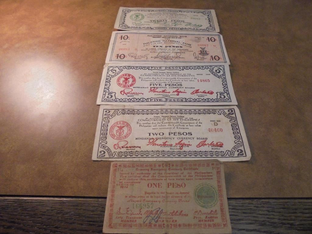 1,2,5,10 & 20 PESOS WWII PHILIPINNES GUERRILLA MONEY