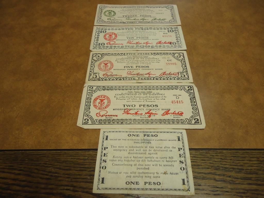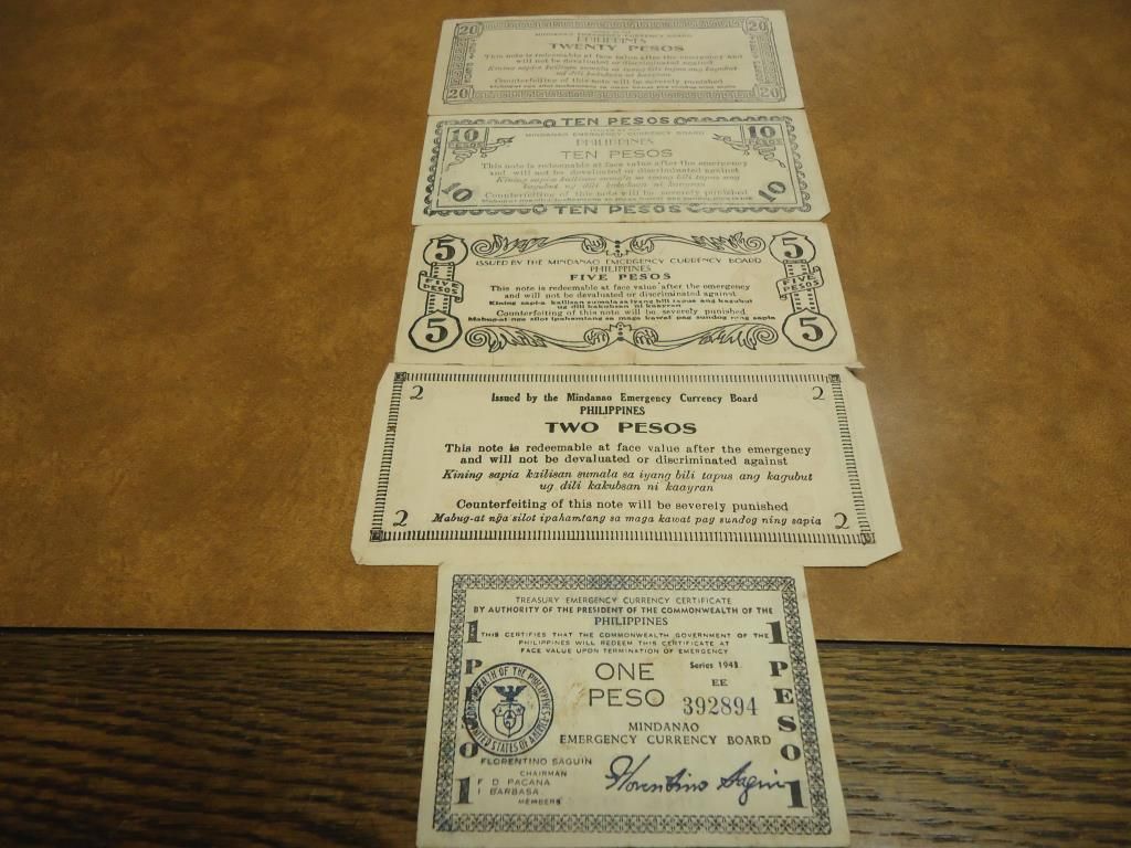 1,2,5,10 & 20 WWII PHILIPINNES GUERRILLA MONEY