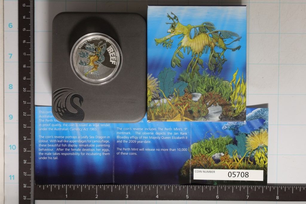 DRAGON COLORIZED COIN. PART OF A 5 COIN SET FROM 2009 IN PROOF CONDITION, IN ORIGINAL MINT PACKAGING WITH CERTIFICATE, IN HARD PLASTIC CAPSULE
