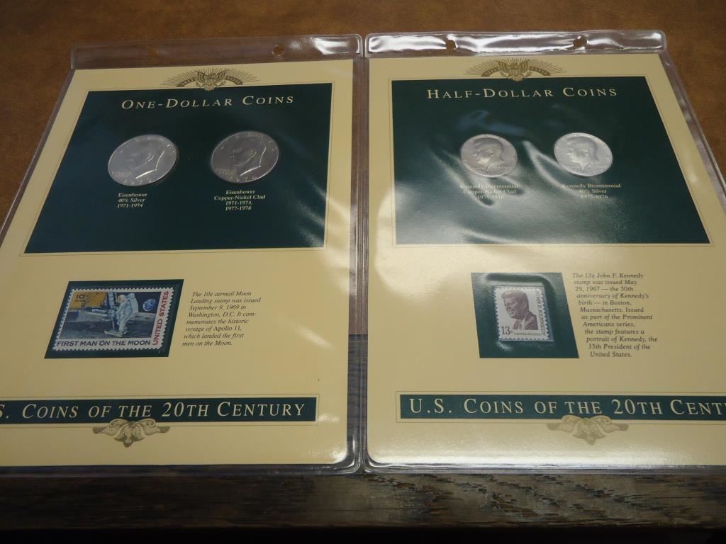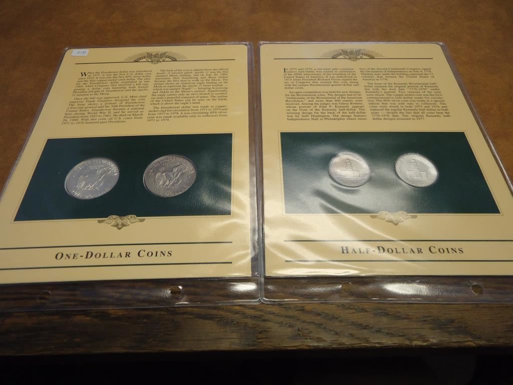 HALF DOLLAR SET CONTAINS: SILVER AND CLAD BICENTENNIAL HALVES AND DOLLAR SET CONTAINS: SILVER AND CLAD IKE DOLLARS