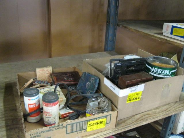 1 2 BOXES OF ASSORTED RUBBER TUBE REPAIR KITS, WINDOW MARKERS, TABLE CLOCK ETC-34